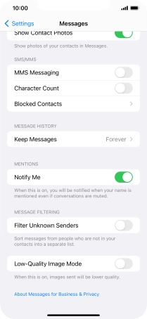 Press the indicator next to "MMS Messaging" to turn on the function.