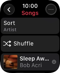 You can use the music player to play audio files you've synchronised with your Apple Watch. To use the music player, you need to establish a connection to a Bluetooth headset.