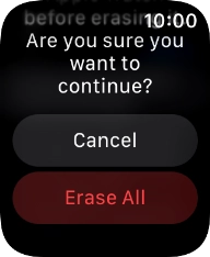 Press Erase All. Wait a moment while the factory default settings are restored. Follow the instructions on the screen to set up your Apple Watch and prepare it for use.