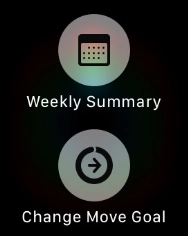 Hard press the screen and follow the instructions on the screen to see an activity summary for the current week or to adjust the daily activity goal.