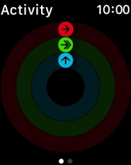 The screen will tell you how far you are from completing your daily activity goals. When the coloured rings are closed, you've reached the goals of your daily activity.