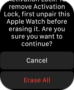 Press Erase All. Wait a moment while the factory default settings are restored. Follow the instructions on the screen to set up your Apple Watch and prepare it for use.