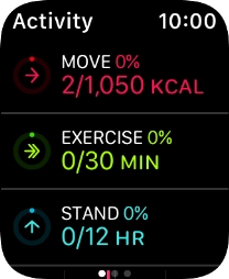 The screen will tell you how far you are from completing your daily activity goals. When the coloured rings are closed, you've reached the goals of your daily activity.