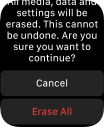 Press Erase All. Wait a moment while the factory default settings are restored. Follow the instructions on the screen to set up your Apple Watch and prepare it for use.