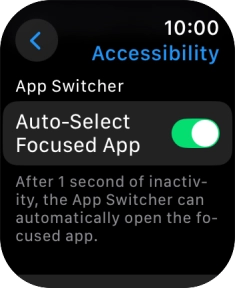 You can select app switcher settings, such as setting your Apple Watch to automatically open a visible app from the list of running apps.