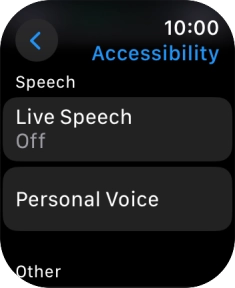 You can select different spoken assistance settings on your Apple Watch, such as Live Speech and Personal Voice, which make it easier for people with speech difficulties to communicate with others during voice calls.