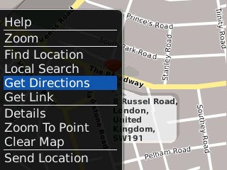 Follow the steps below to view your options while using BlackBerry Maps.