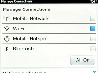 Scroll to Wi-Fi and press the Navigation key to turn on Wi-Fi.