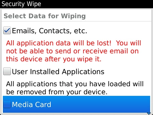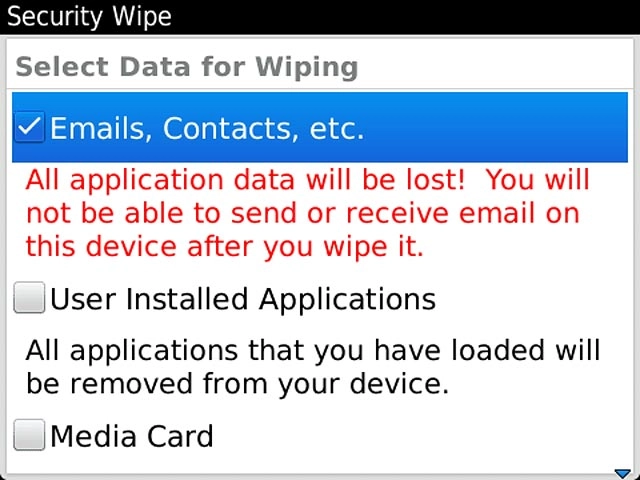 Press one of the following data types to turn restoration of factory default settings of these data types on or off: