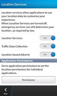 Press the indicator next to Location Services to turn the function on or off.