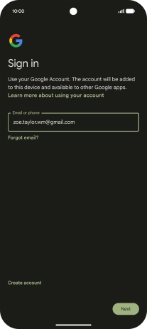 If you don't have a Google account, press Create account and follow the instructions on the screen to create an account.