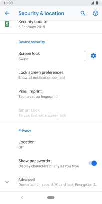 Turn use of PIN on your Google Pixel 3 Android 9.0 on or off