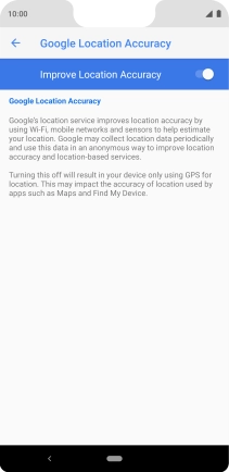 If you press the indicator next to "Improve Location Accuracy" to turn off the function, your phone can find your exact position using the GPS satellites but it may take longer as there is no access to supplementary information from the mobile network or nearby Wi-Fi networks.