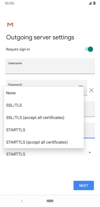 Press the field below "Username" and key in the username for your email the email provider's outgoing server.