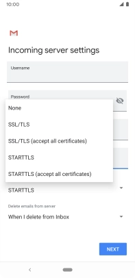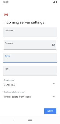 Press the field below "Server" and key in the name of your email provider's incoming server.