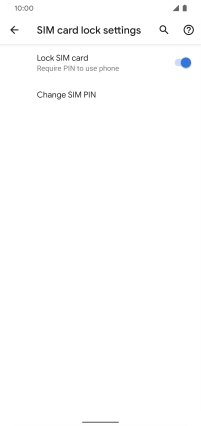 Press the indicator next to "Lock SIM card" to turn the function on or off.