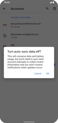 Press the indicator next to "Automatically sync data" to turn the function on or off.