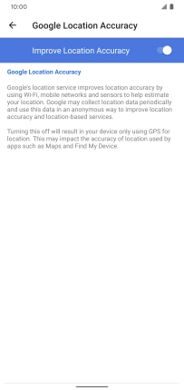 If you press the indicator next to "Improve Location Accuracy" to turn off the function, your phone can find your exact position using the GPS satellites but it may take longer as there is no access to supplementary information from the mobile network or nearby Wi-Fi networks.