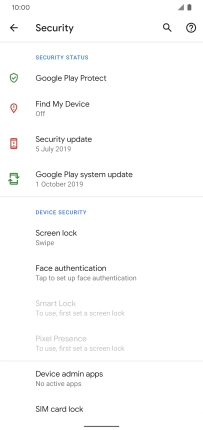 Press the indicator next to "Lock SIM card" to turn the function on or off.