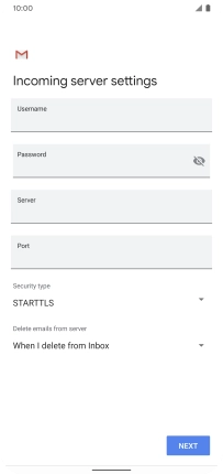Press the field below "Server" and key in the name of your email provider's incoming server.