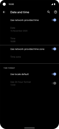 Press the indicator next to "Use network-provided time" to turn on the function.