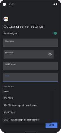 12. Enter outgoing server