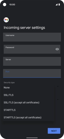 Press the field below "Server" and key in the name of your email provider's incoming server.