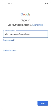 If you don't have a Google account, press Create account and follow the instructions on the screen to create an account.