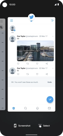 Slide your finger slowly upwards starting from the bottom of the screen until the list of running applications is displayed.