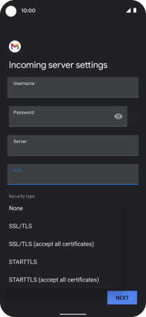 Press the field below "Server" and key in the name of your email provider's incoming server.