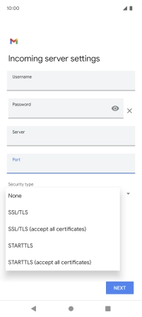 Press the field below "Server" and key in the name of your email provider's incoming server.