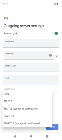 11. Enter outgoing server