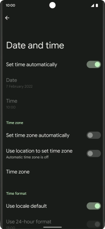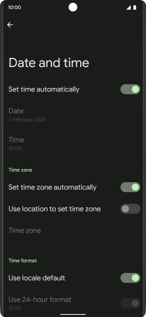 Press the indicator next to "Set time automatically" to turn on the function.