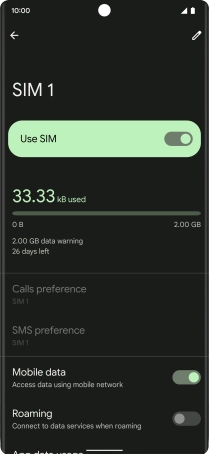 Press the indicator next to "Mobile data" to turn the function on or off.