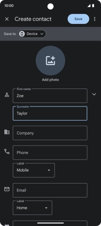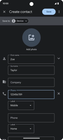 Follow the instructions on the screen to add more information such as an email address and a personal ring tone.