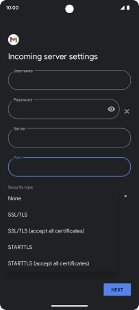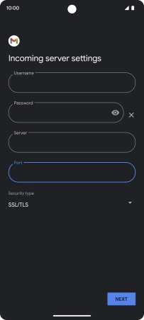 Press the field below "Server" and key in the name of your email provider's incoming server.