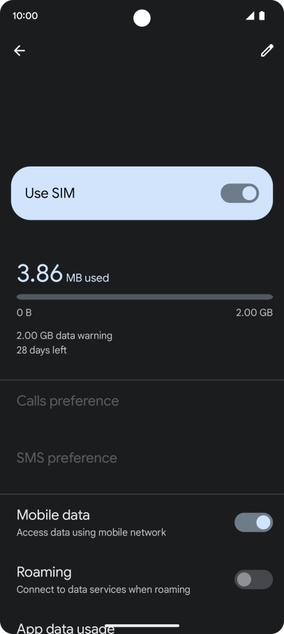 Press the indicator next to "Mobile data" to turn the function on or off.