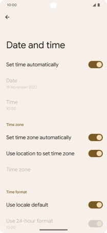 Press the indicator next to "Set time automatically" to turn on the function.