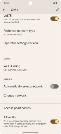 Press the indicator next to "Automatically select network" to turn on the function.