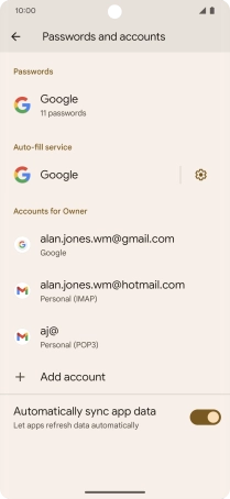 Press the indicator next to "Automatically sync app data" to turn the function on or off.