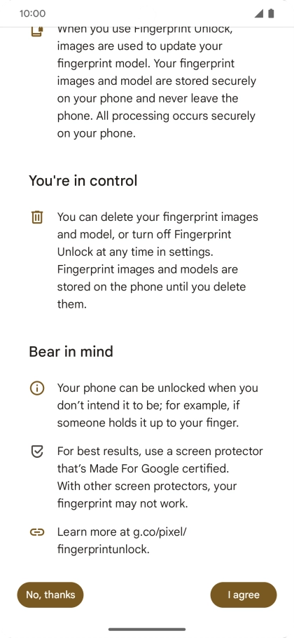 Follow the instructions on the screen to create the phone lock code using your fingerprint.