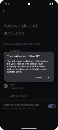 Press the indicator next to "Automatically sync app data" to turn the function on or off.