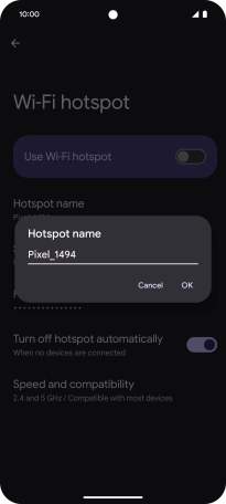 Press the indicator next to "Use Wi-Fi hotspot" to turn on the function.