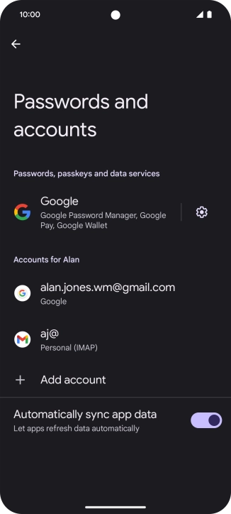 Press the indicator next to "Automatically sync app data" to turn the function on or off.