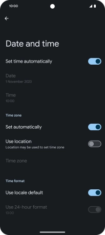 Press the indicator next to "Set time automatically" to turn on the function.
