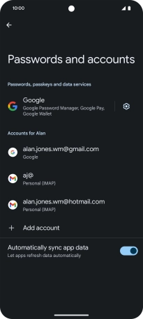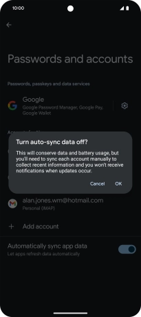 Press the indicator next to "Automatically sync app data" to turn the function on or off.