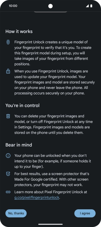 Follow the instructions on the screen to create the phone lock code using your fingerprint.