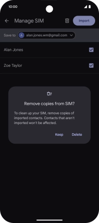 If you want to keep the copied contacts on your SIM, press Keep.