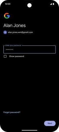 Press the field below "Enter your password" and key in the password for your Google account.