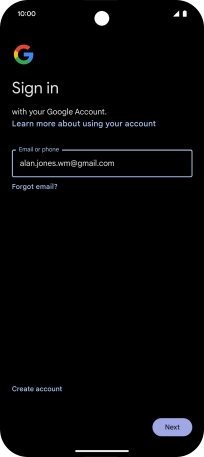 If you don't have a Google account, press Create account and follow the instructions on the screen to create an account.